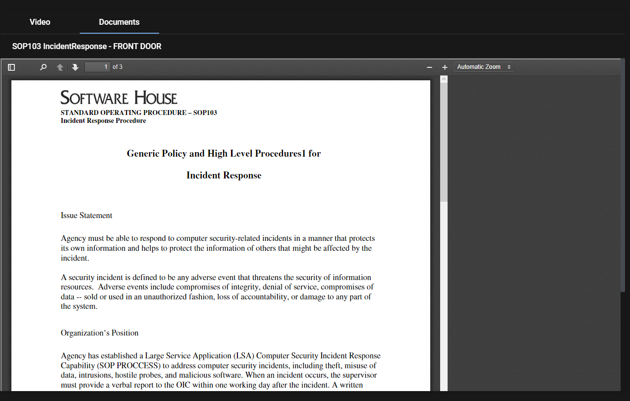 The controls and capabilities available with the document viewer depend upon the type of document that you link to the Event in the C•CURE 9000 database.