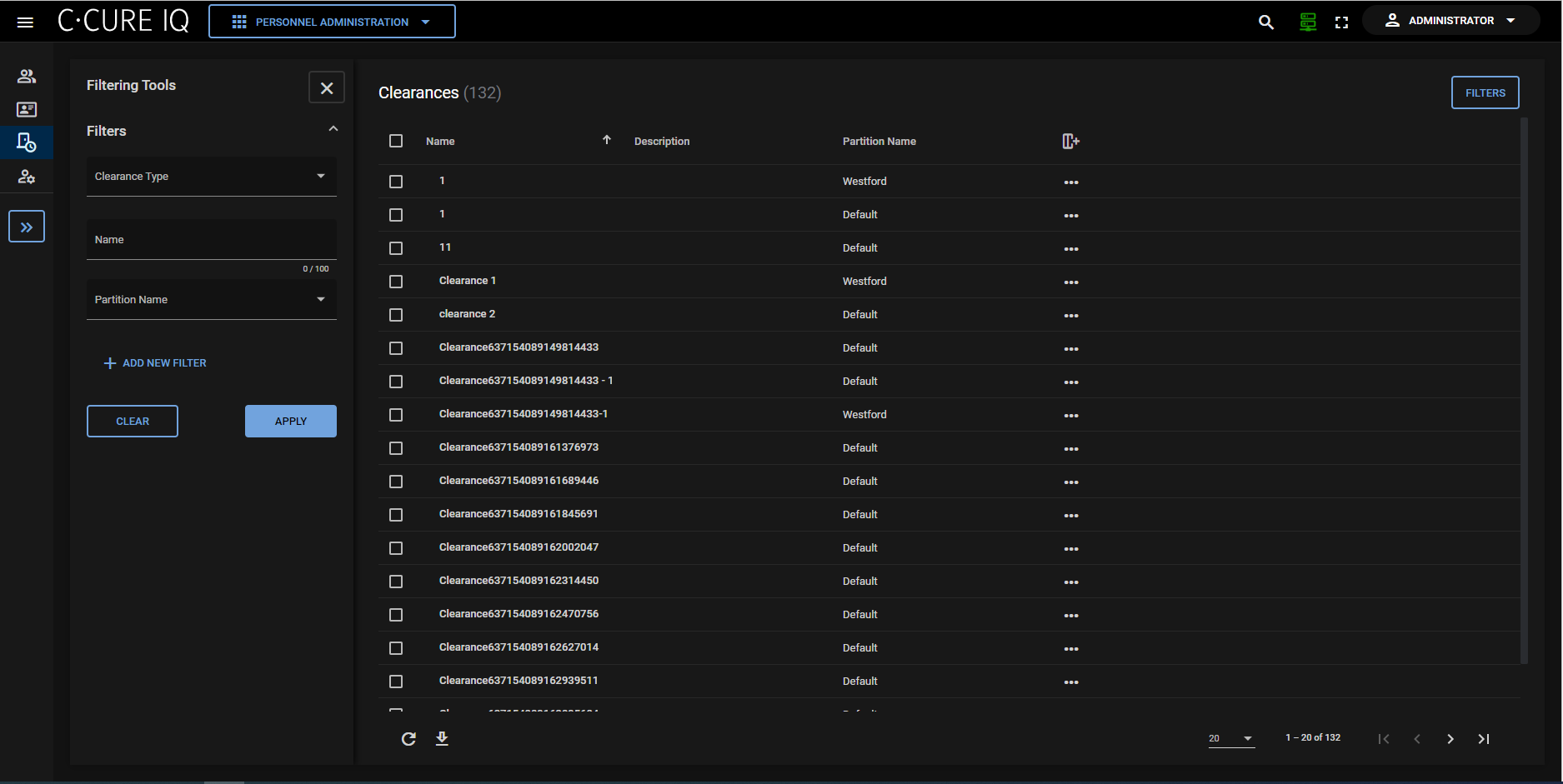 Clearances From the Clearances tab you can search for clearance objects and view personnel associated with clearances. Figure 1. Clearances tab