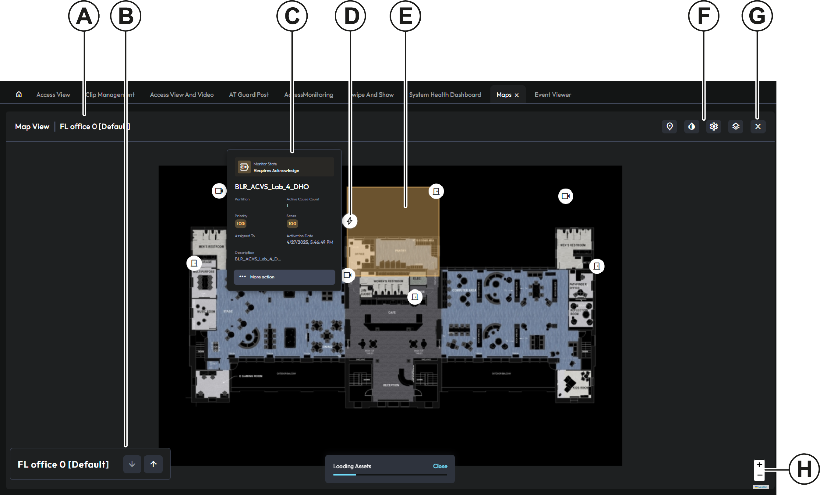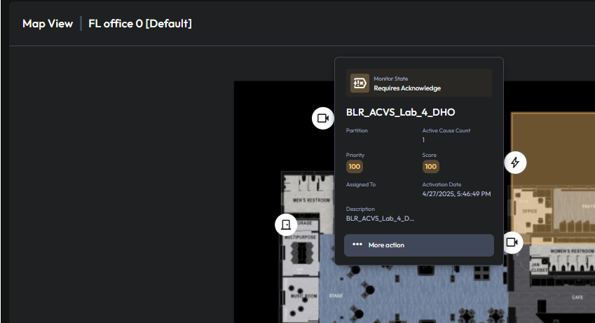 When you view an indoor map, you can interact with the object and event icons that are added to