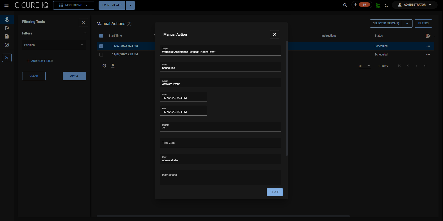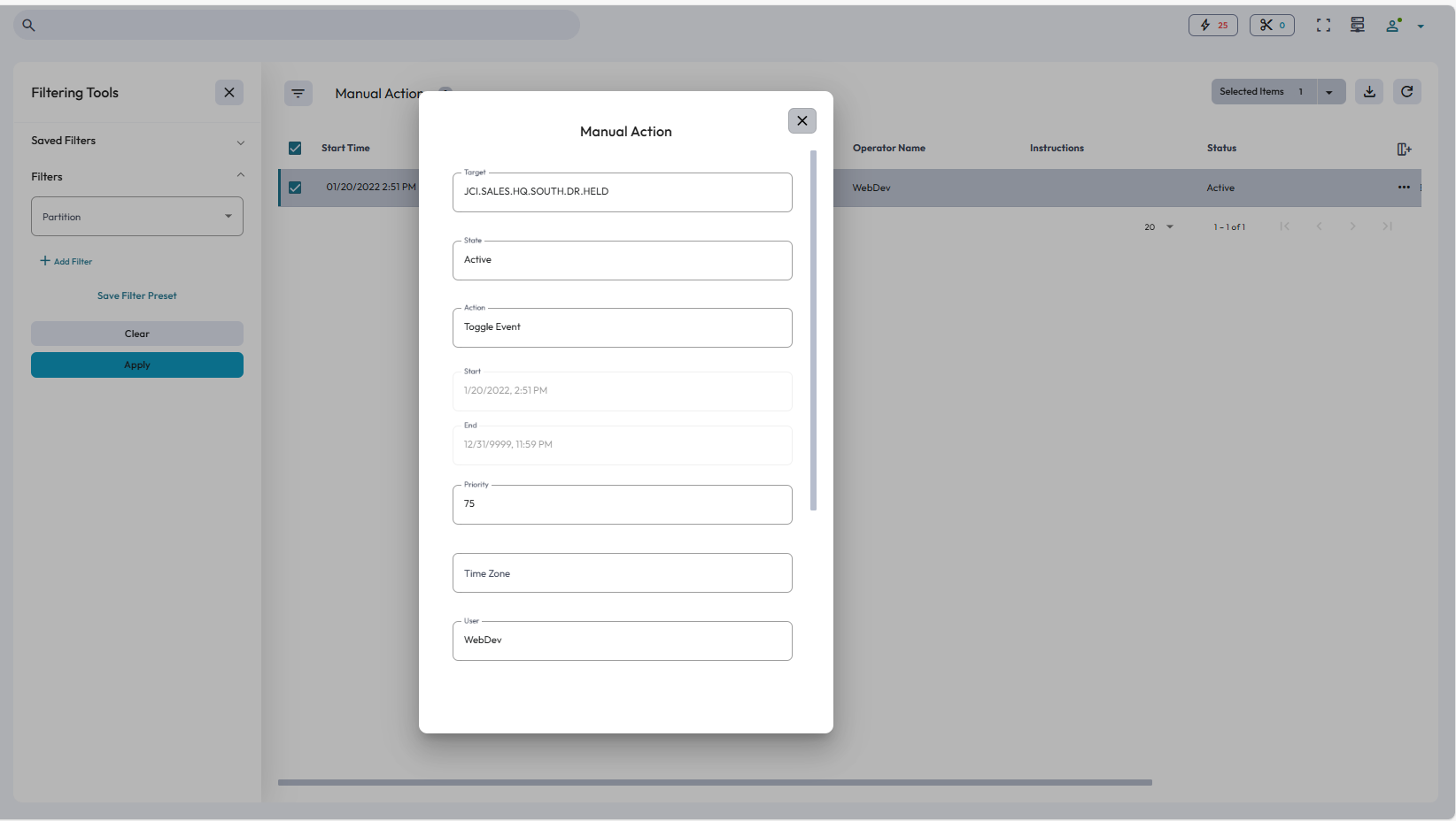 You can use the context menu to view or cancel a manual action. To access the context menu, right-click a manual action from the list.