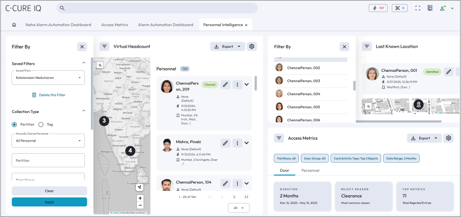 Personnel Intelligence provides the data visualization for all the personnel who have swiped into a specific door groups or tags over a period, along with the complete details related to the swipes.