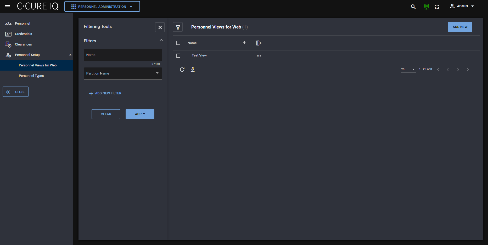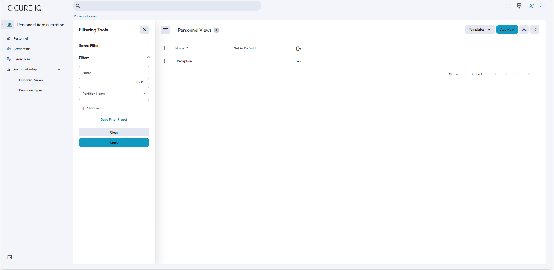 Personnel Setup From the Personnel Setup tab you can add and configure personnel views and personnel types. Figure 1. Personnel Setup tab