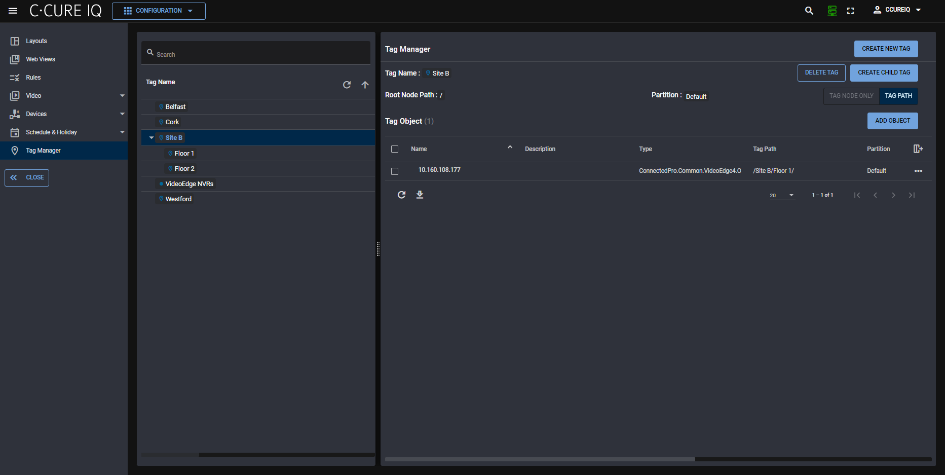 Similar to file organization on your computer, you can organize objects through the hierarchical system by adding tags to them using the Tag Manager. Hierarchical tags in C•CURE IQ are a system in which you can organize or rank your tags. It offers an intuitive browsing experience which groups and labels information in your system. The hierarchy in C•CURE IQ orders and ranks objects while incorporating all tags that you apply to the objects.