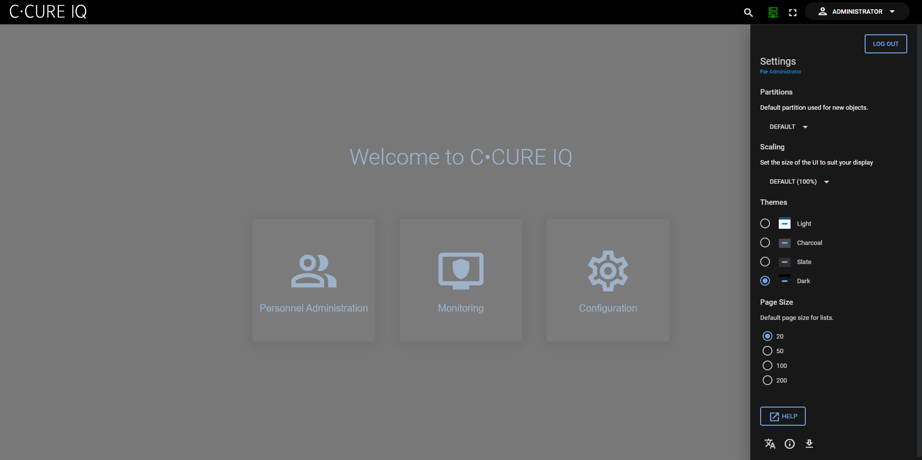 | Themes | Select the color theme for C•CURE IQ. You can select Light, Charcoal, Slate, or Dark themes, and your choice is automatically saved between sessions. |