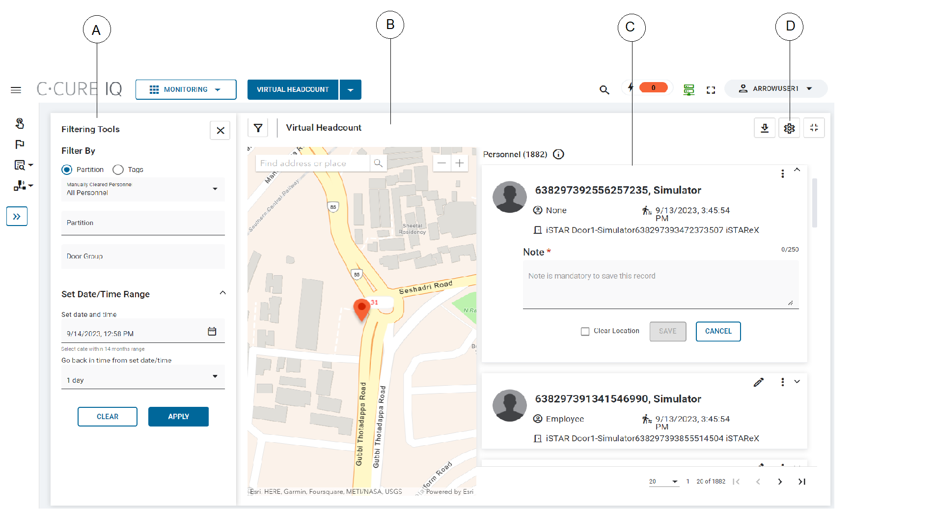 Virtual headcount works in tandem with Last known location data. It is used to quickly determine what group of people are at a particular location (such as Door Group, General Tags, Location Tags, and Partition).